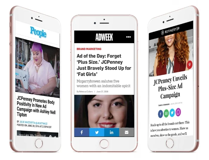 Our #HereIAm campaign introduced JCPenney's new plus-size clothing line, The Boutique, featuring award-winning designer Ashley Nell Tipton. The goal was to inspire and liberate plus-size women from fashion faux pas and, with over 620M media impressions and 9,000 mentions, that's exactly what we did.